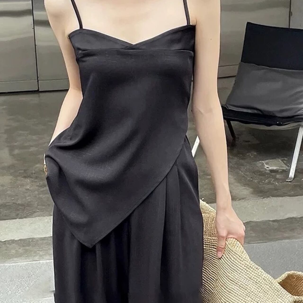 デザイン性のあるキャミソールと、シンプルなパンツはセットアップ可能。