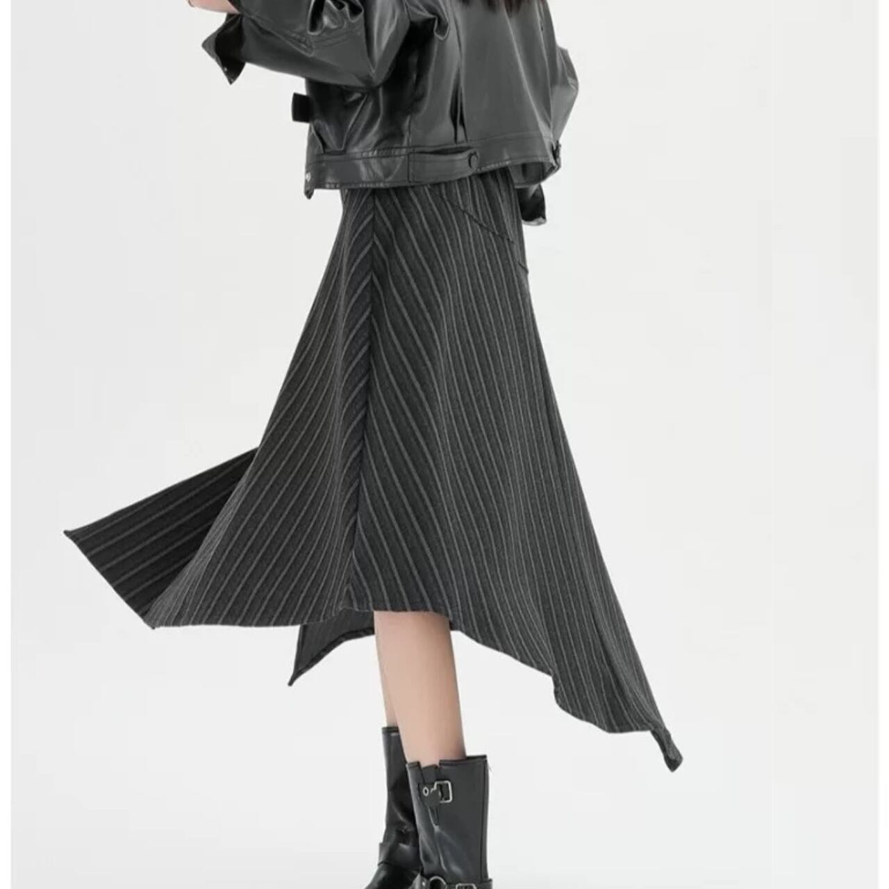 アシンメトリ-なデザインが目を惹く1着。スリットを生かしてタイツやブーツとのコーディネ-トを楽しむのもおすすめ。