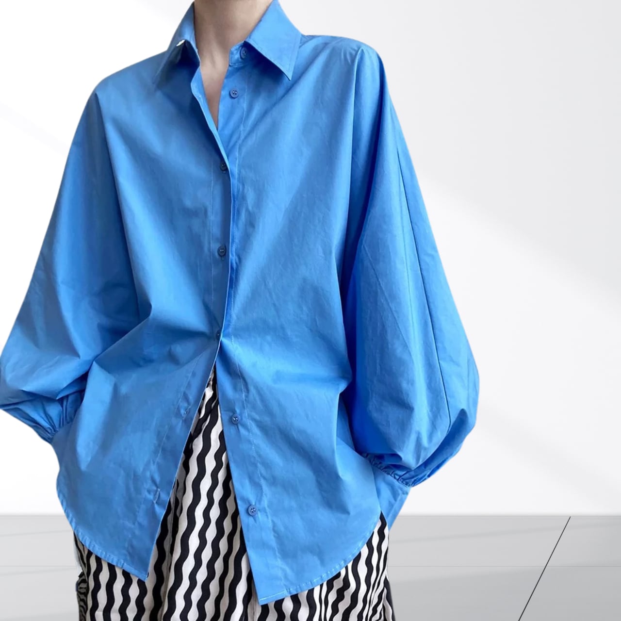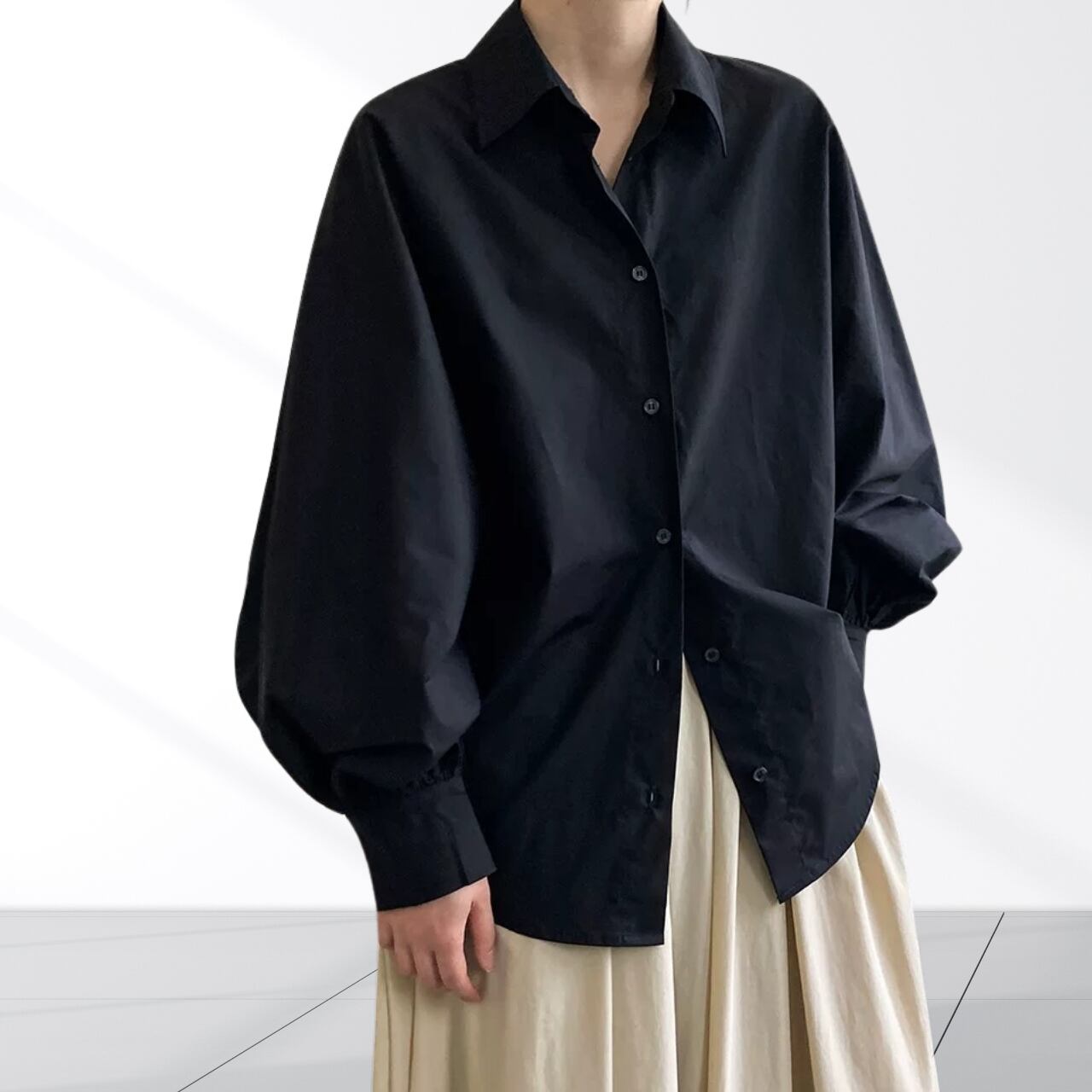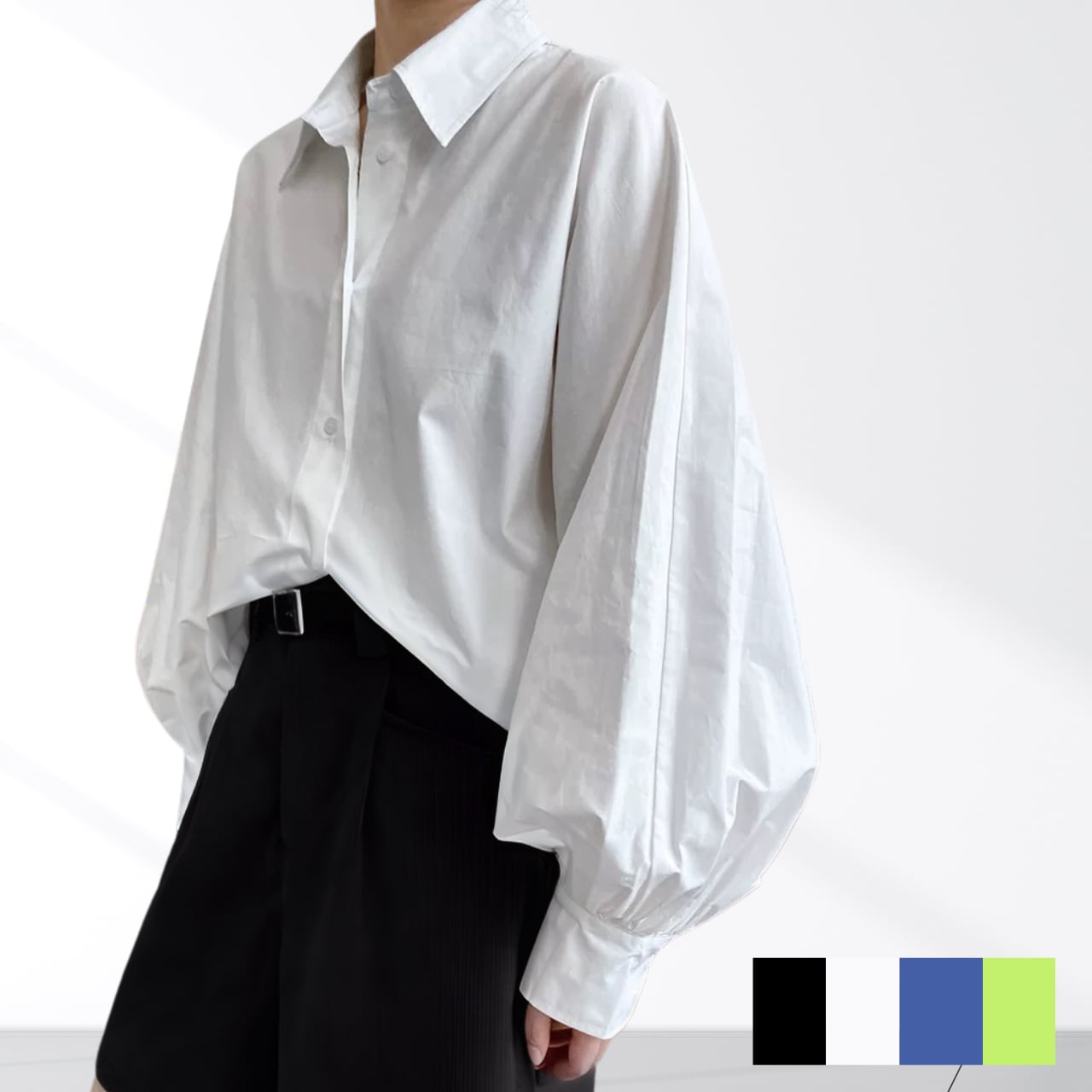 定番カラーとアクセントカラーから選べるバルーンスリーブシャツ。立体感のあるスリーブのシルエットがアクセントに。