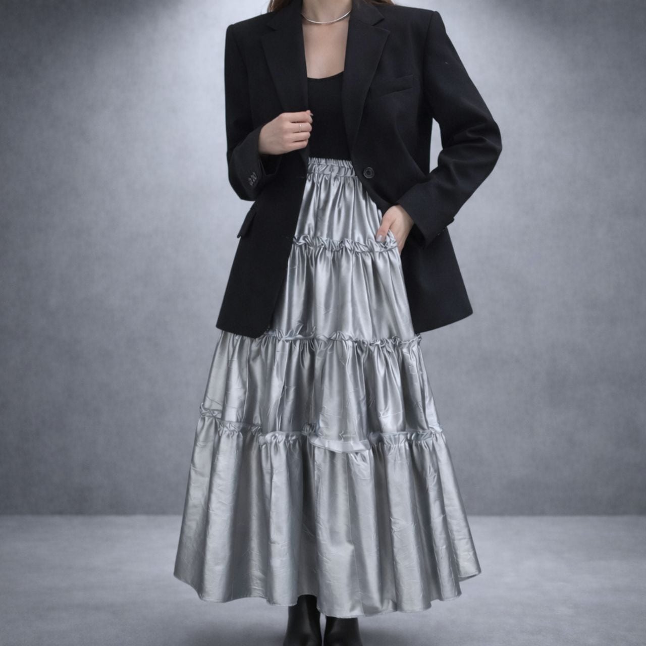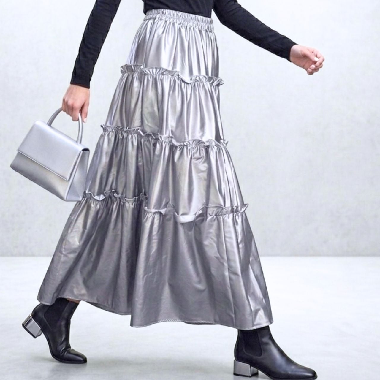 メタリックティアードスカート 0508