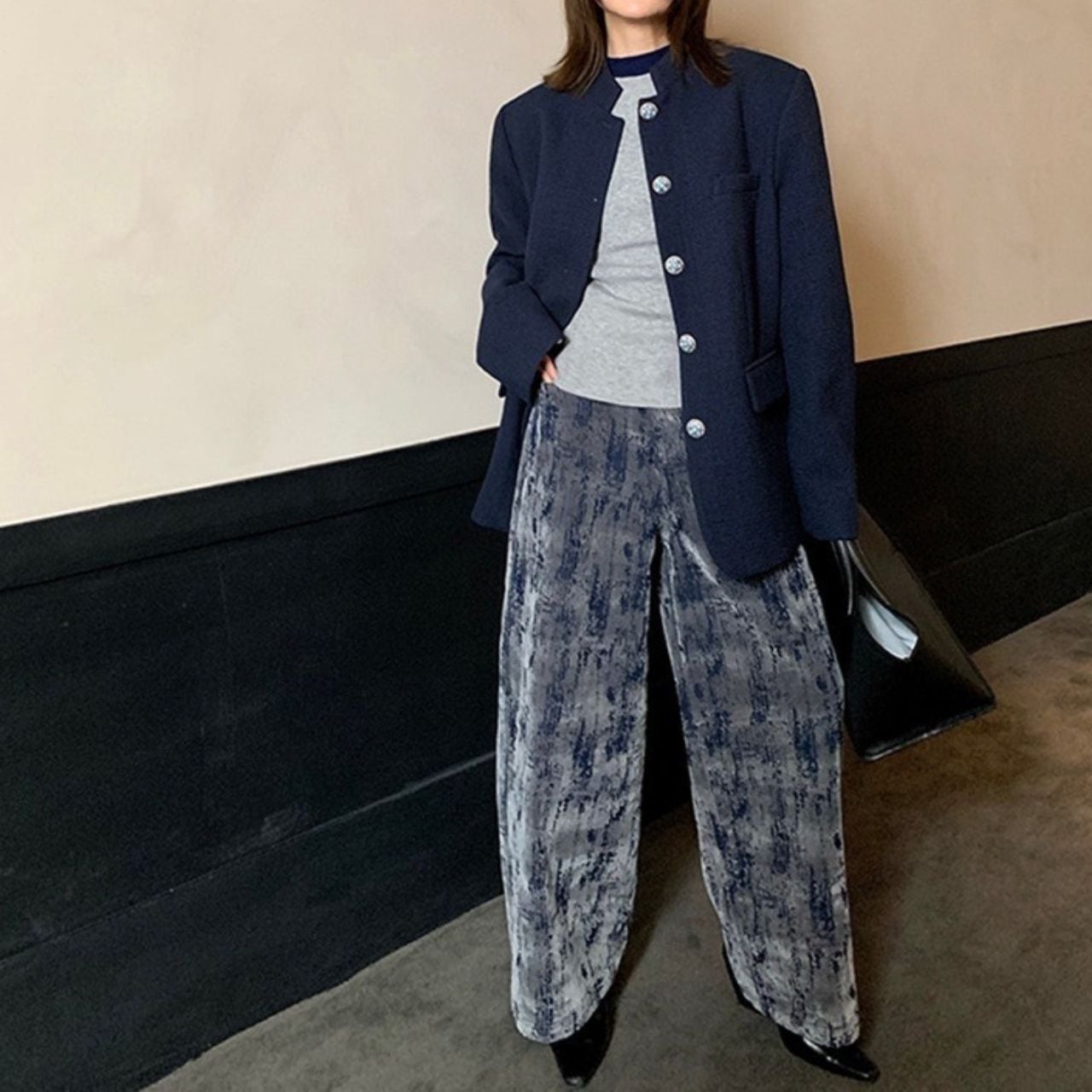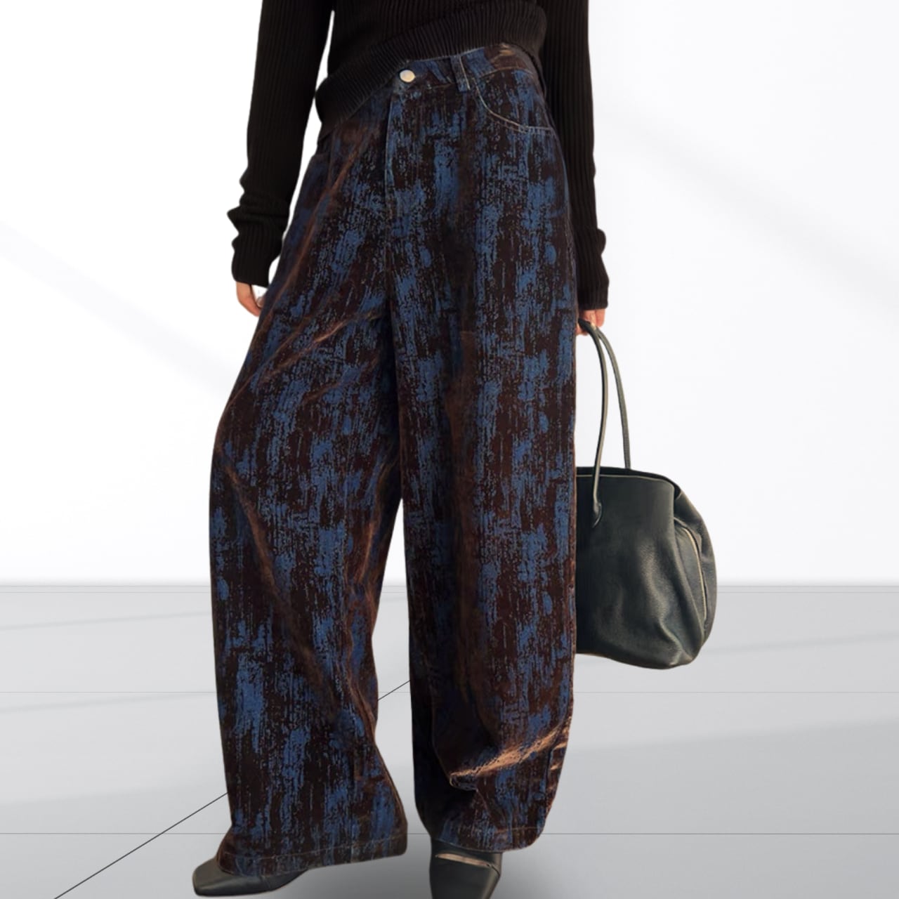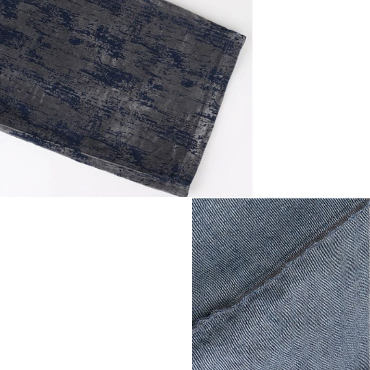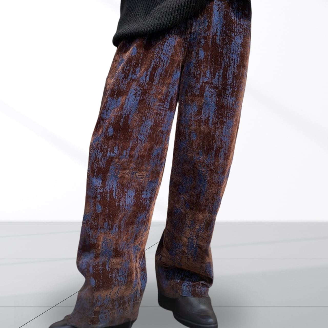 綿のデニムパンツの表面に加工が施されたデザインパンツ。トレンドカラーのブラウンとブルーが印象的。※加工には個体差があります。