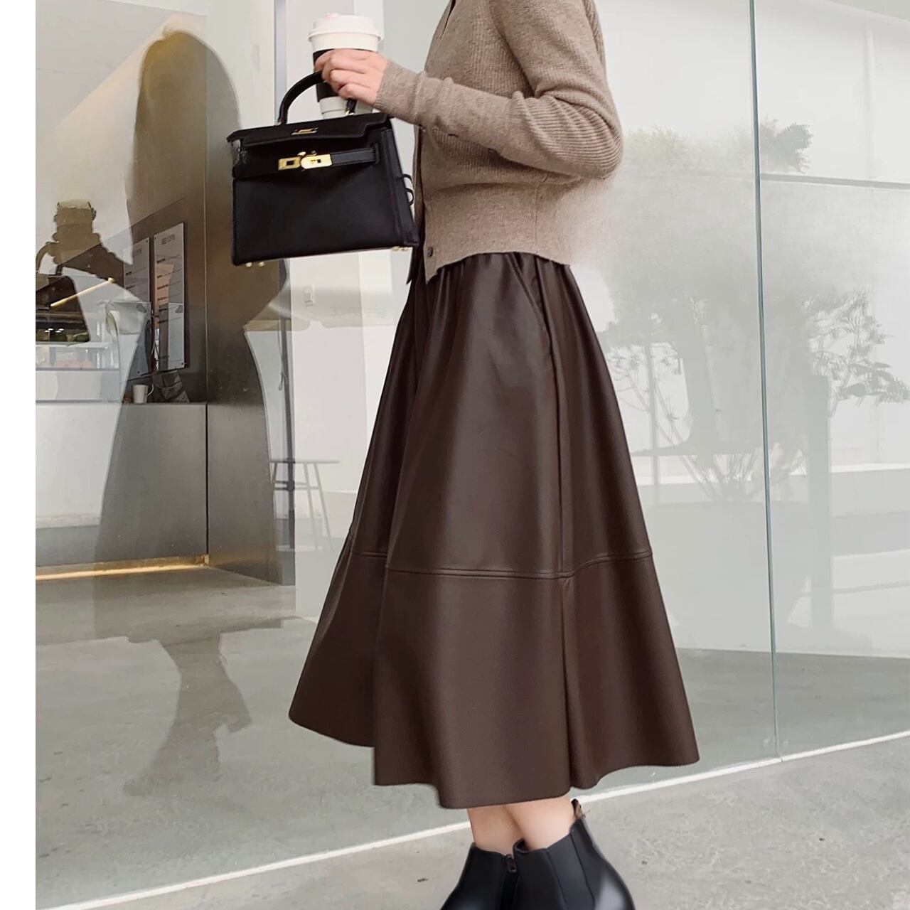 フェイクレザーフレアスカート【2col】 0523