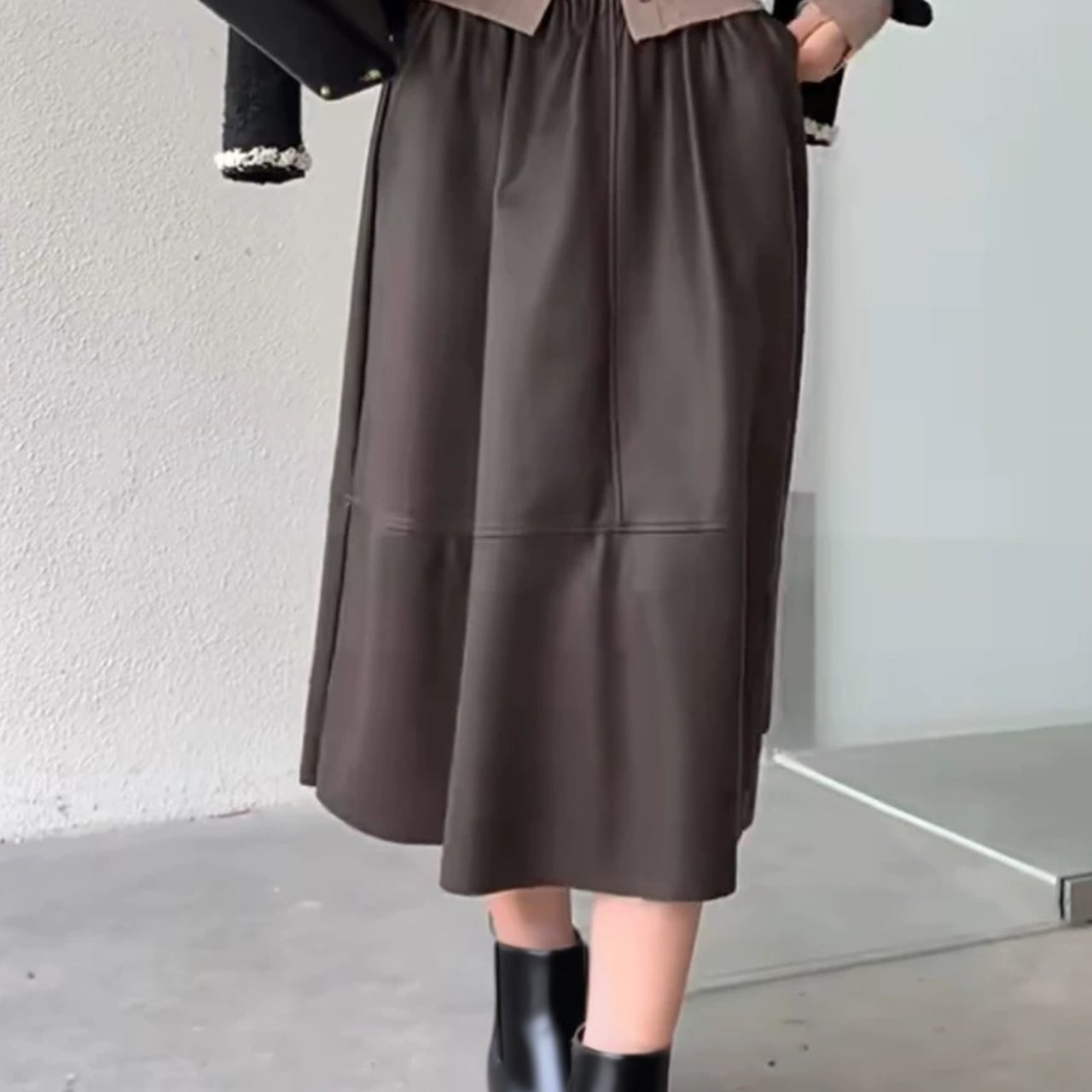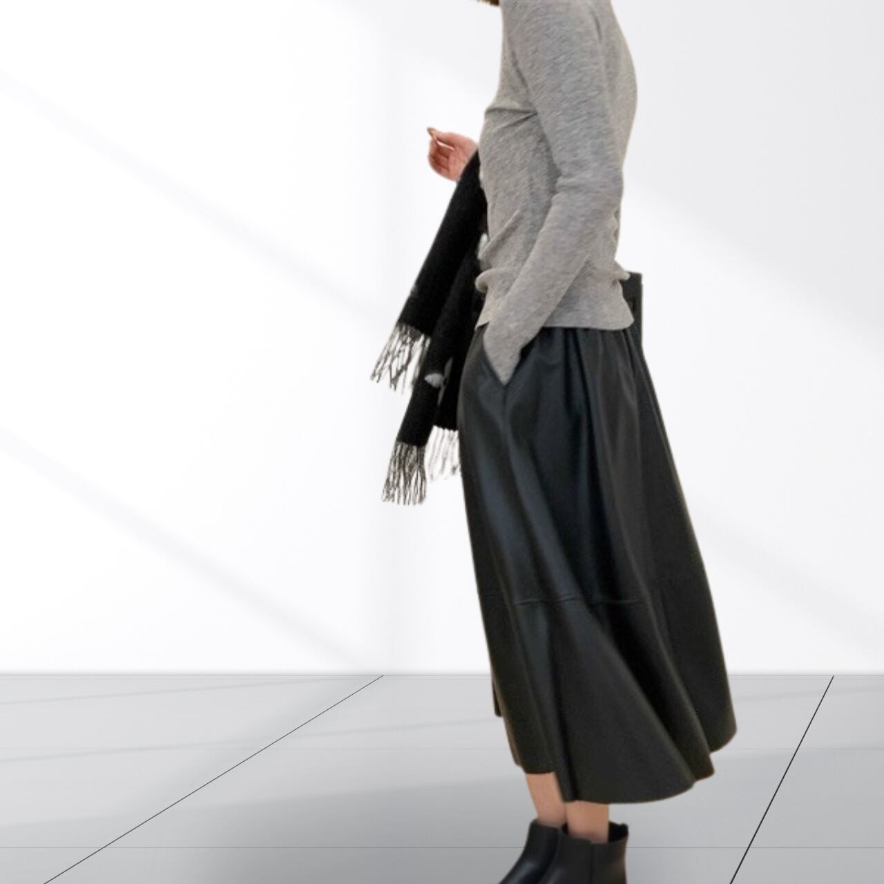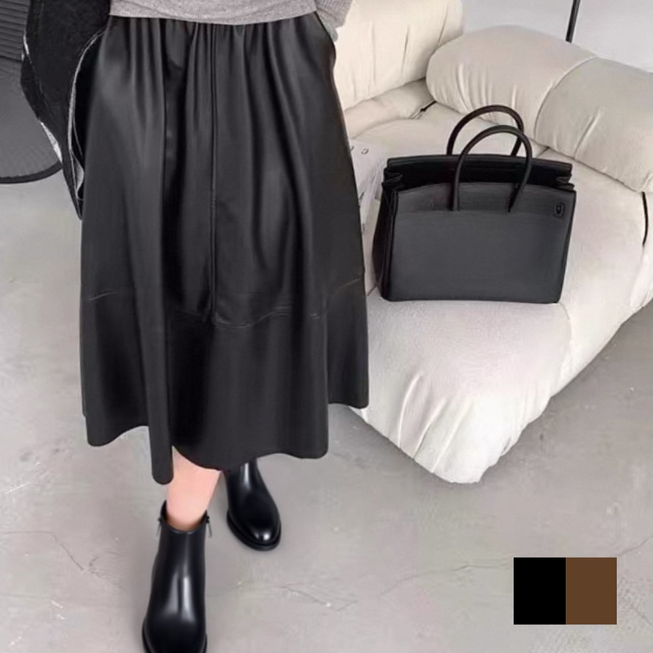 堅苦しさのないレザースカートは着回し力抜群。ポケットもついて実用性も◎※裾は切りっぱなしのデザインのため多少粗い仕上がりとなっています。デザイン上のものであり、不良品ではありません。気になる場合は購入前によくご検討ください。