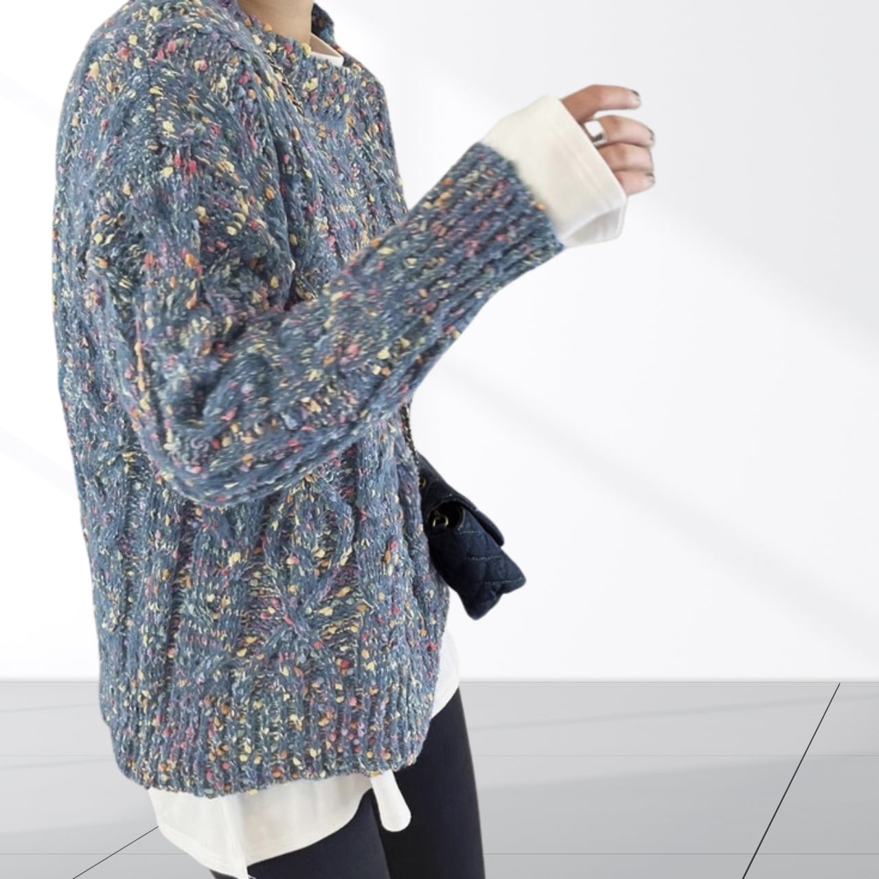 カラフルで立体感のあるネップが散りばめられた表情のあるセーター。シンプルなシャツやボトムスと合わせたコーディネートでセーターを引き立てるのがポイント。手洗い可。