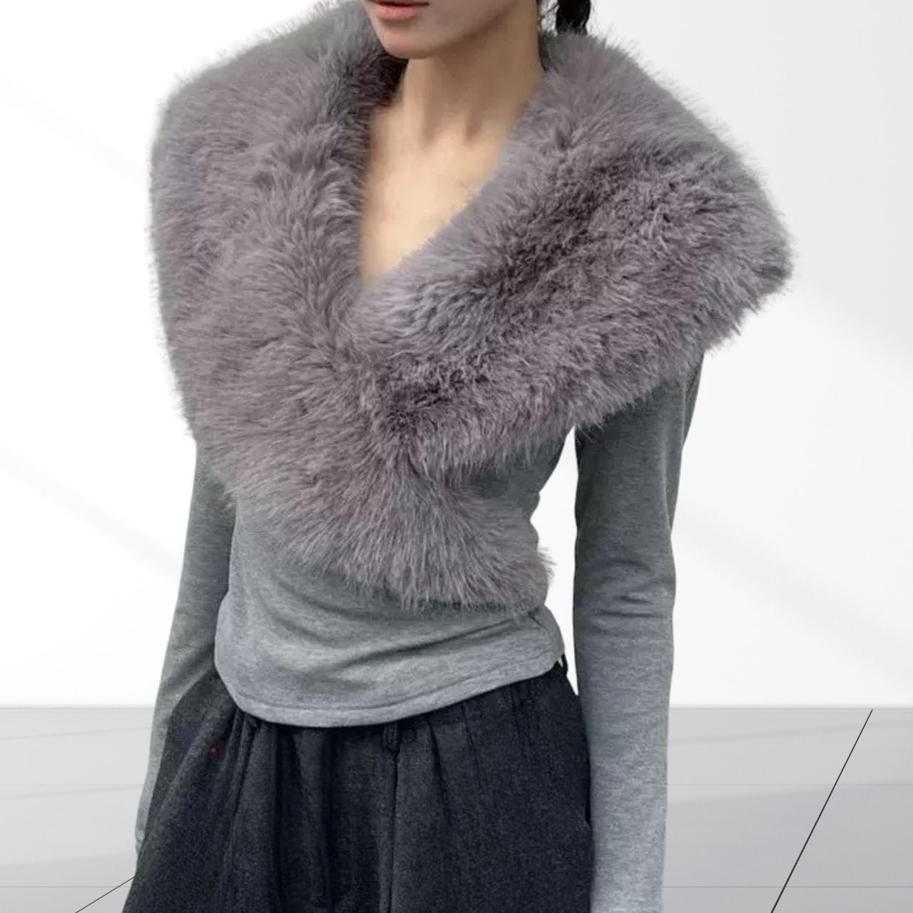 大きなファーカラーがコーディネートにゴージャスな雰囲気をプラスしてくれる主役級トップス。