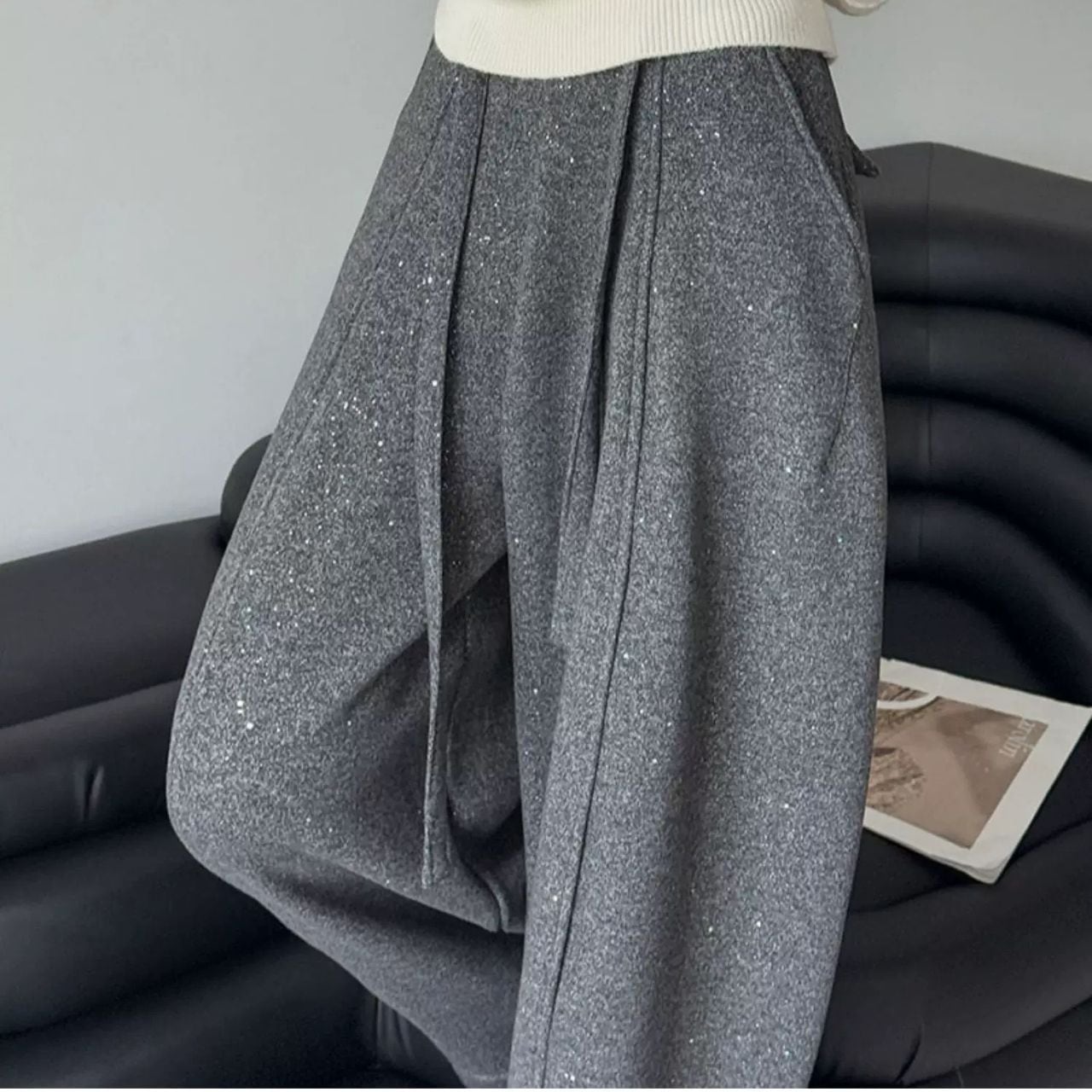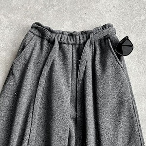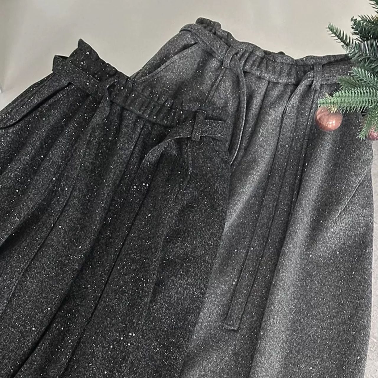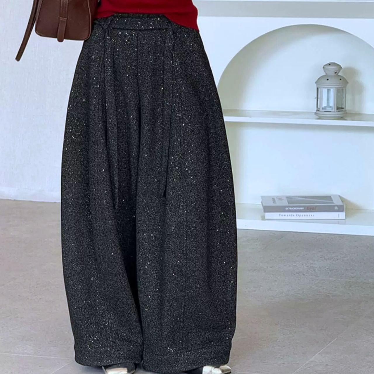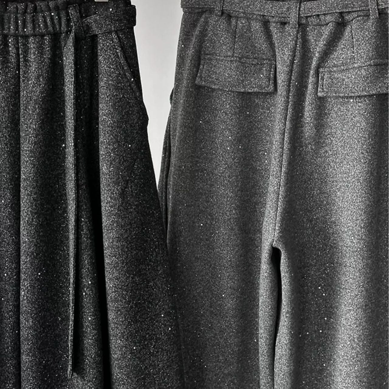 季節素材にスパンコールを添えた、大人のためのカーブパンツ。