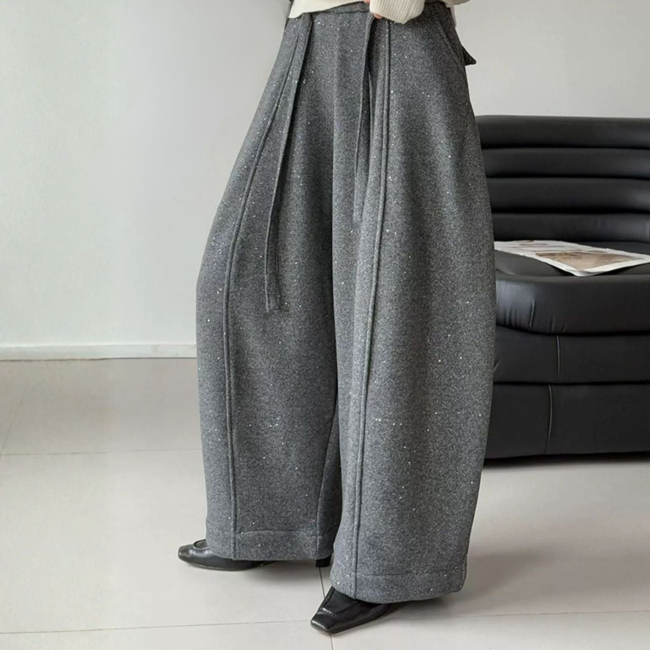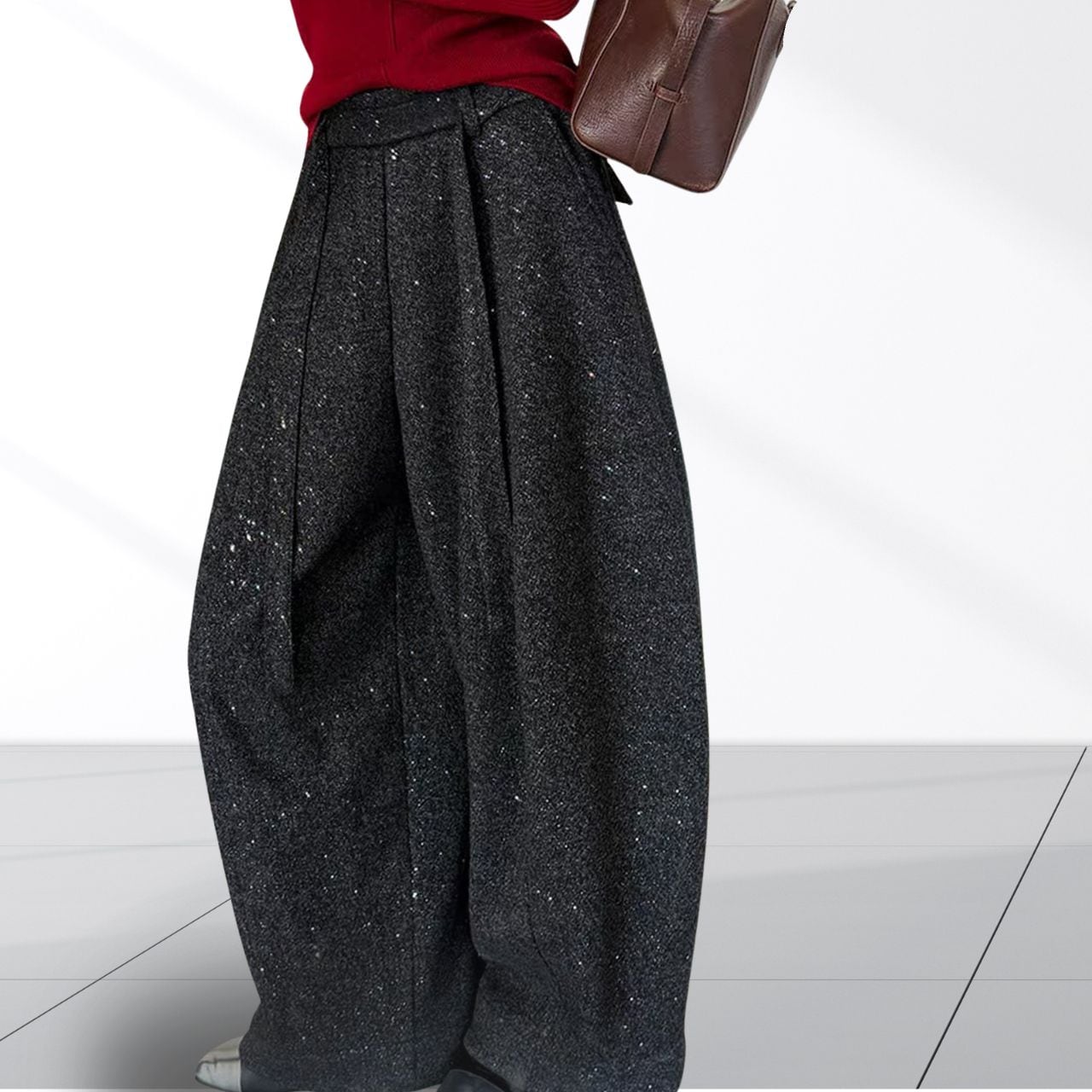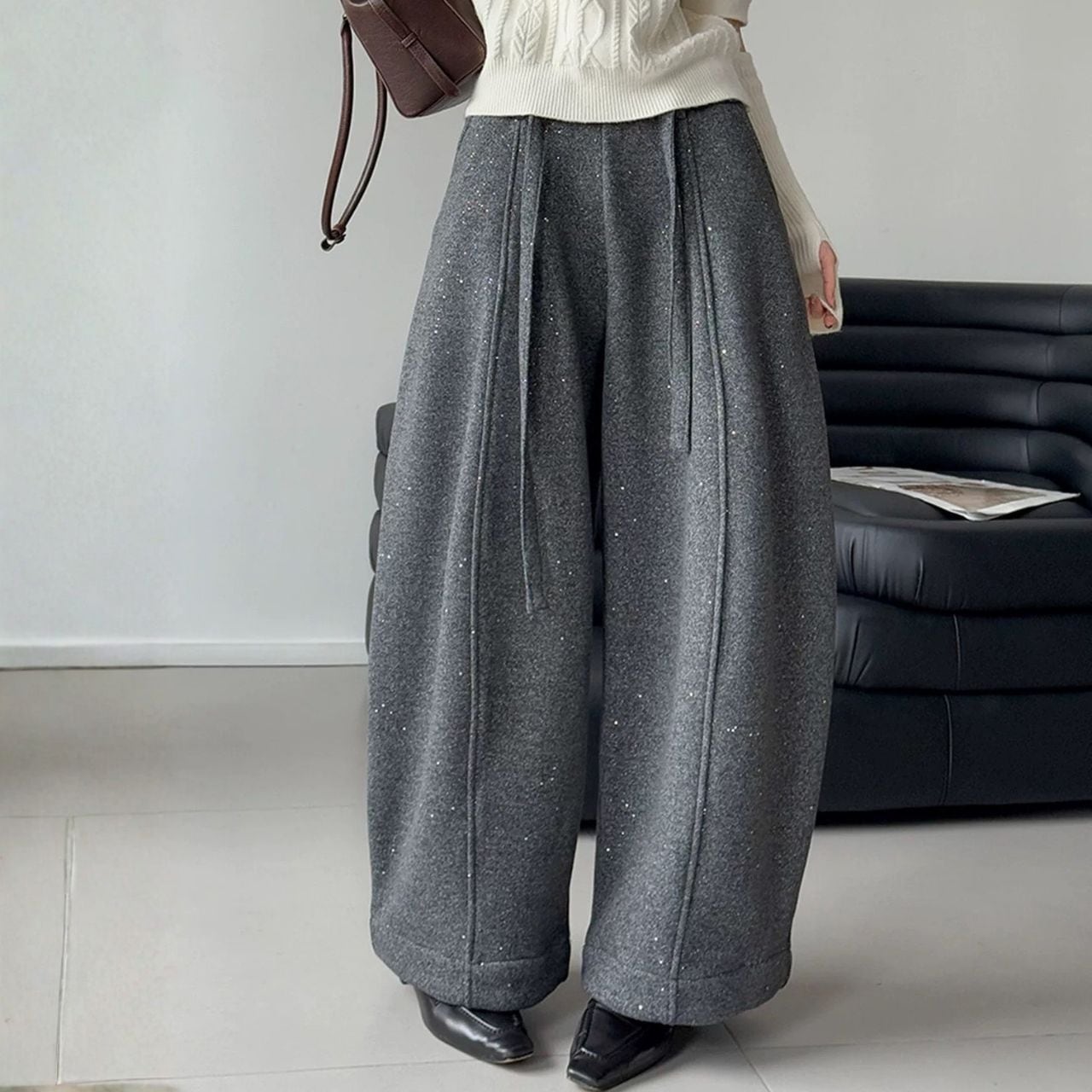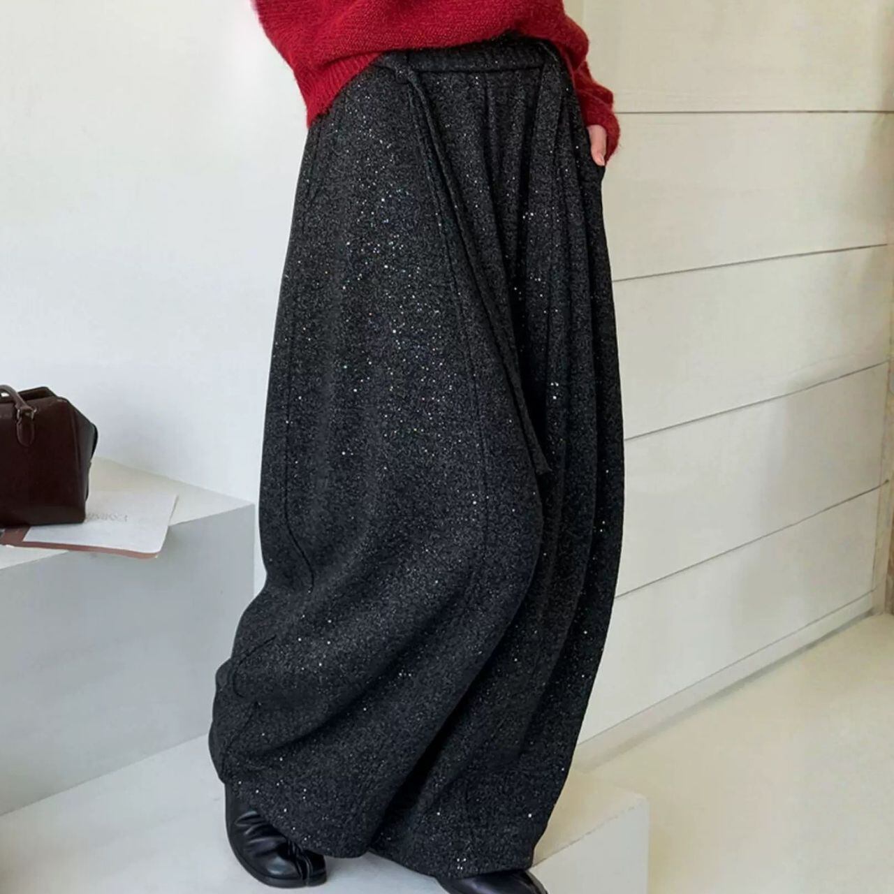 季節素材にスパンコールを添えた、大人のためのカーブパンツ。