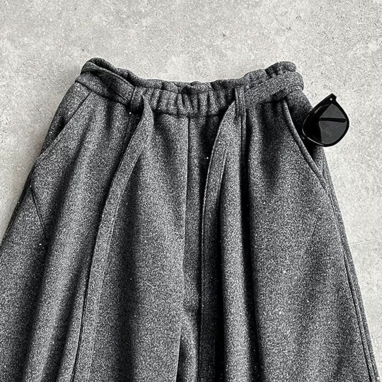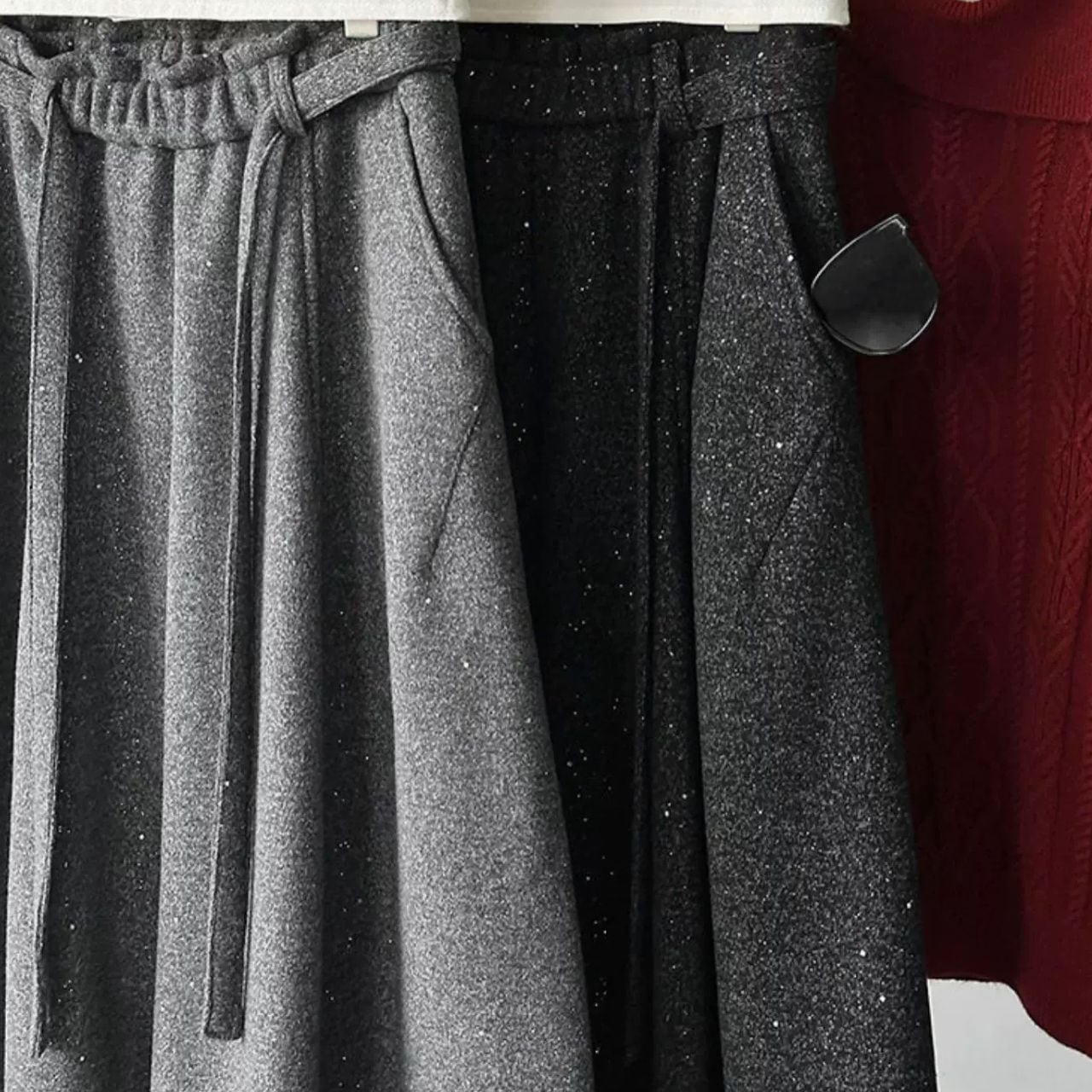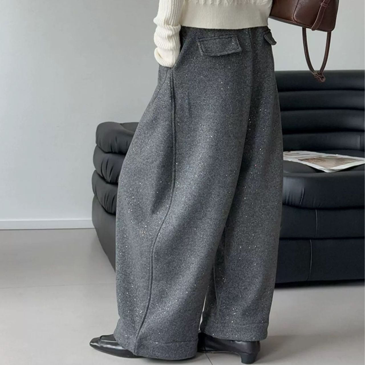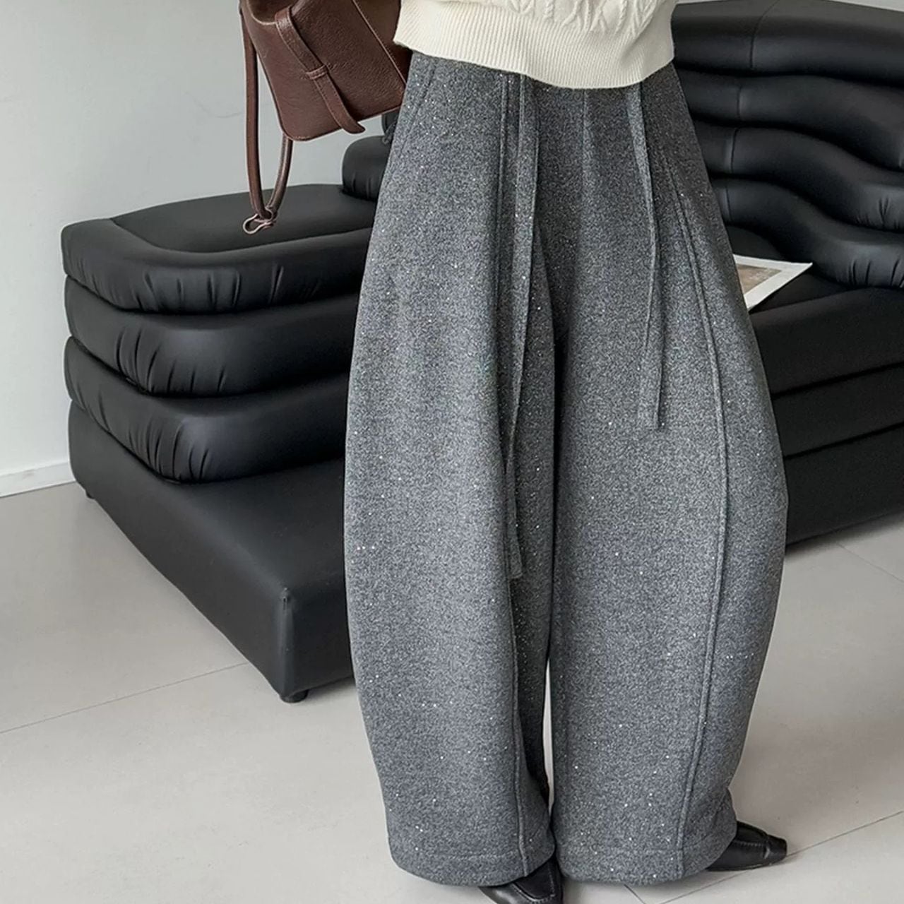 季節素材にスパンコールを添えた、大人のためのカーブパンツ。