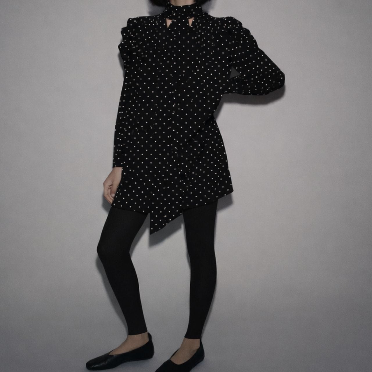 ドットボウタイドレープチュニックドレス 0563