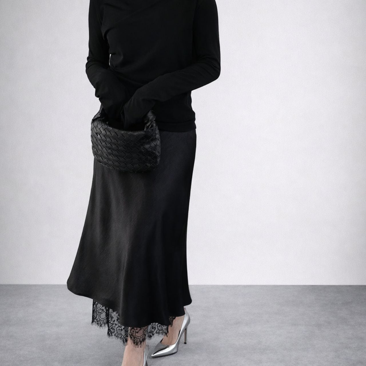 甘さを抑えたモードな印象に。