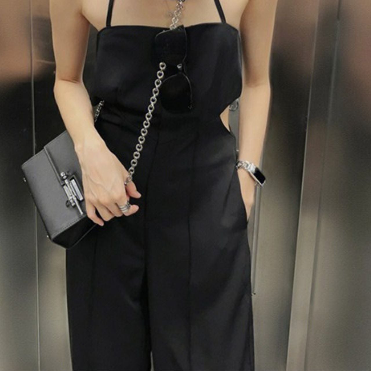 ホルターネックカットアウトサロペット 0566