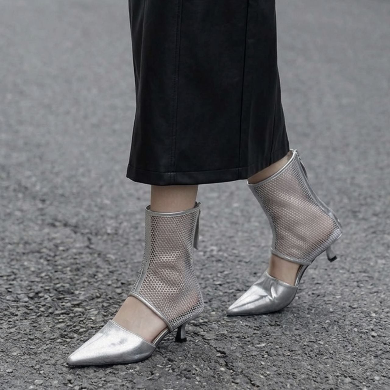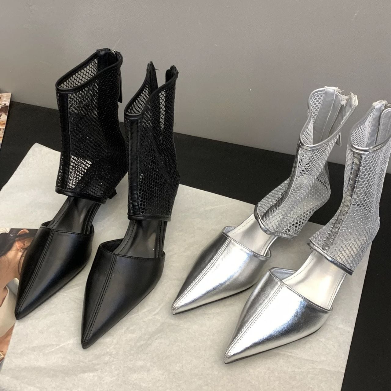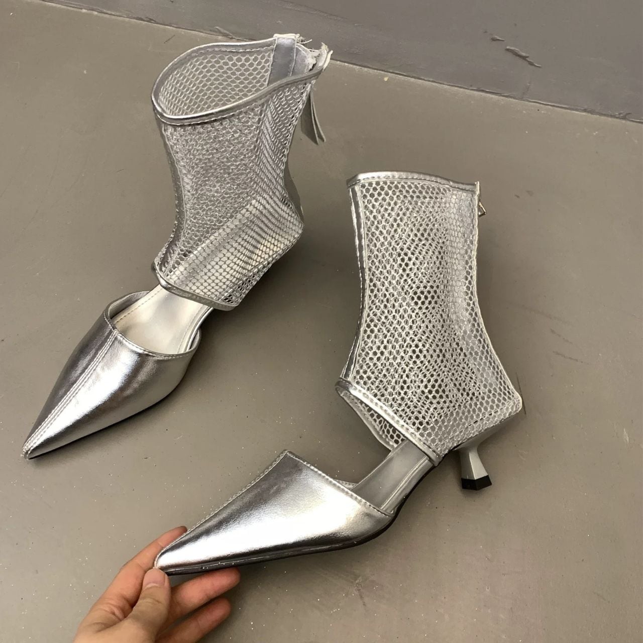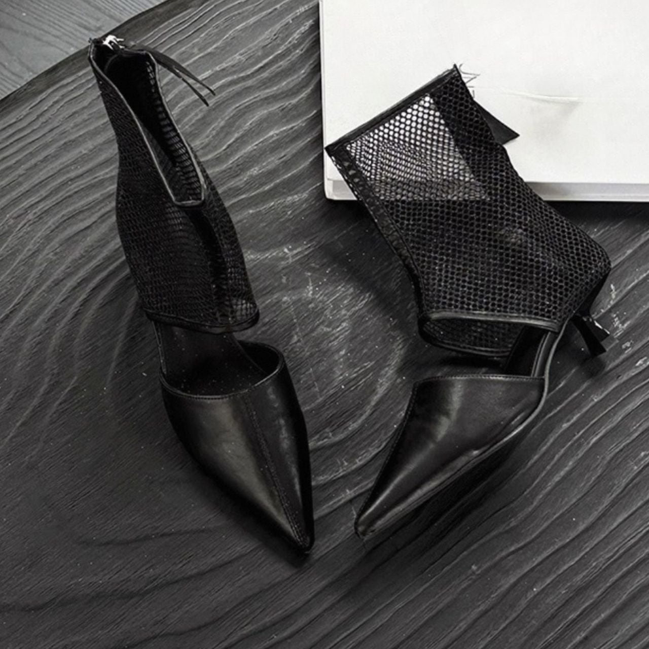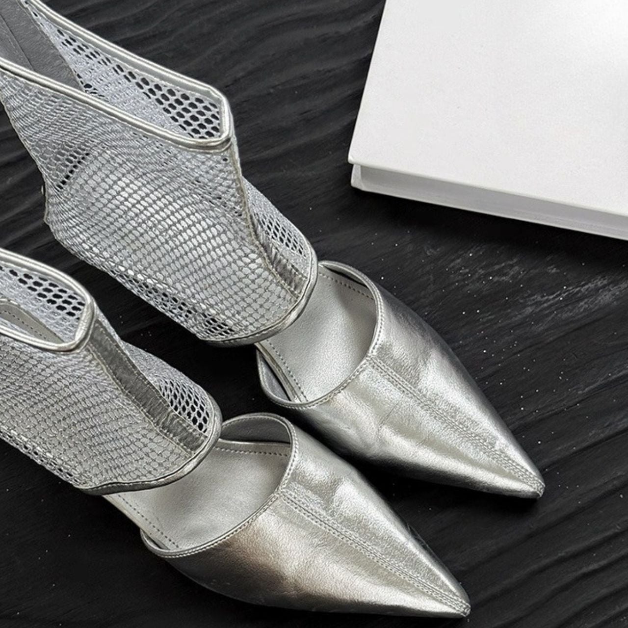 シャープなポインテッドトゥと透け感のあるメッシュ。