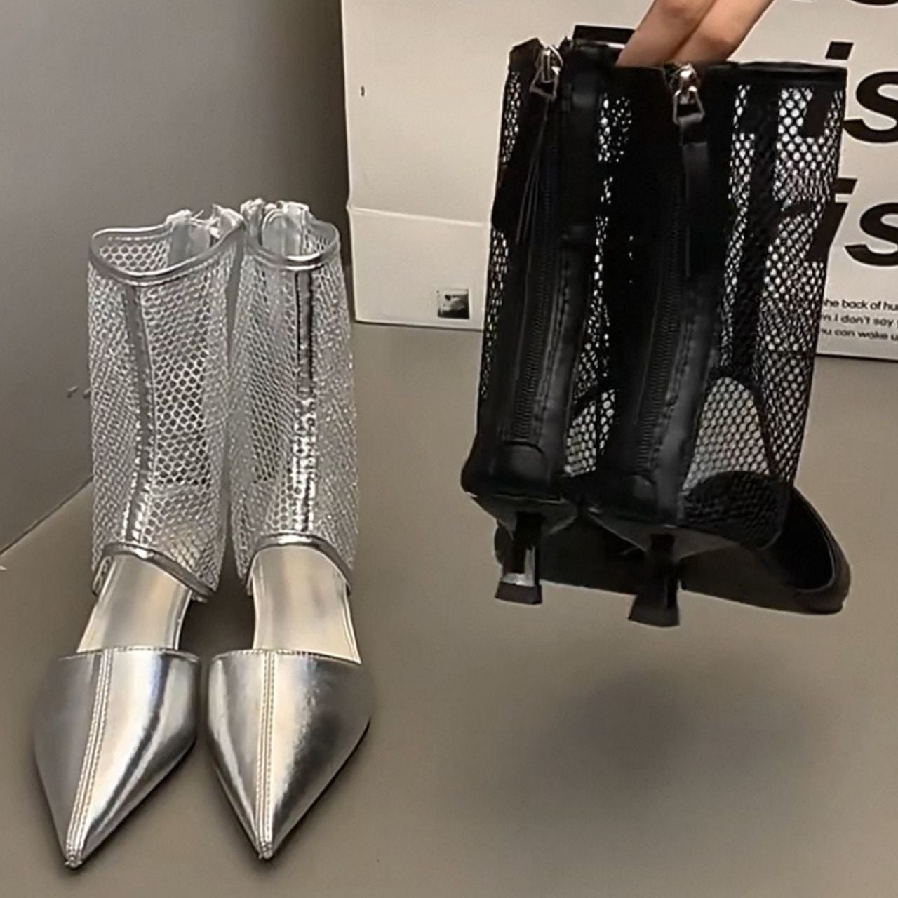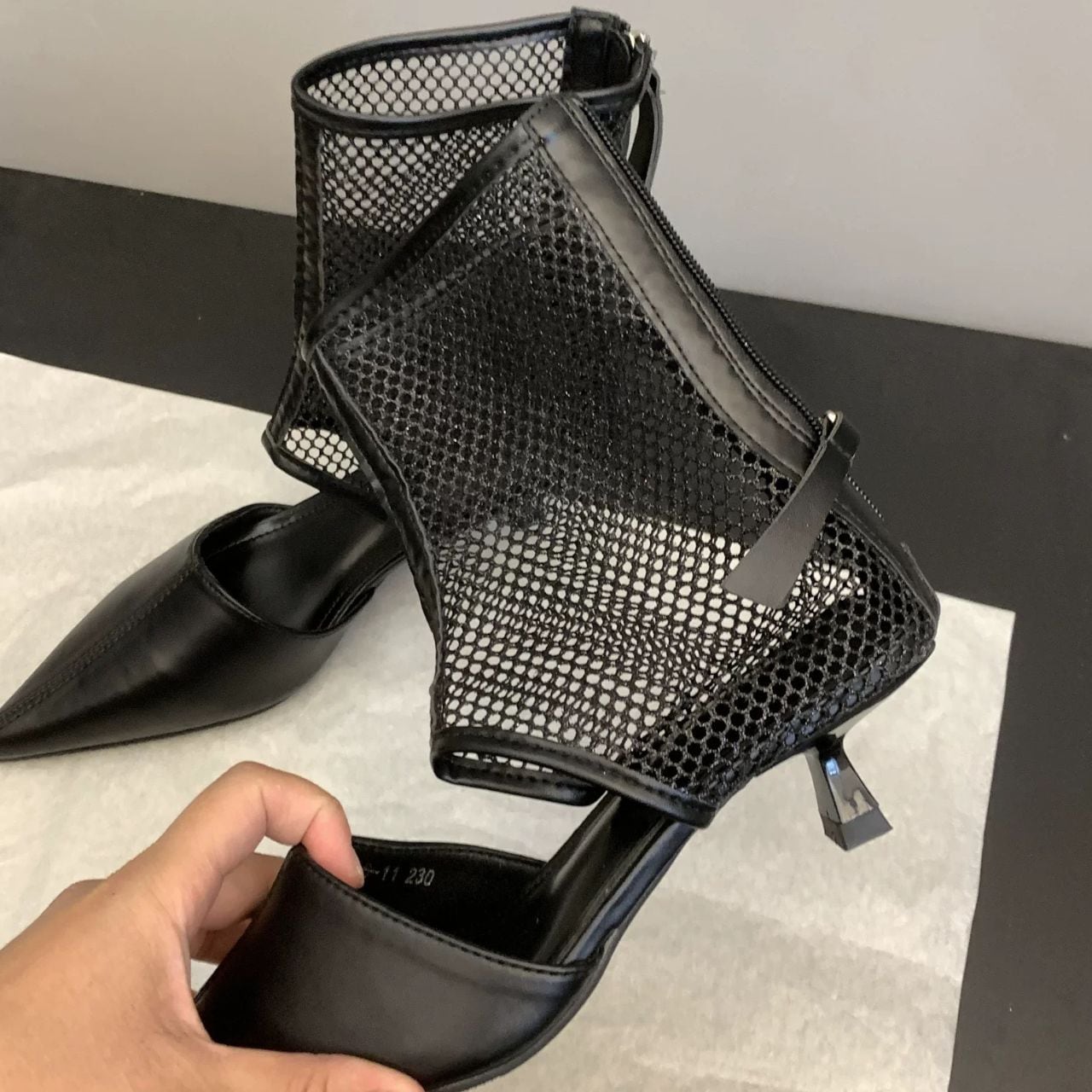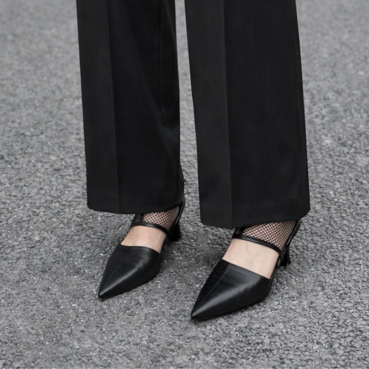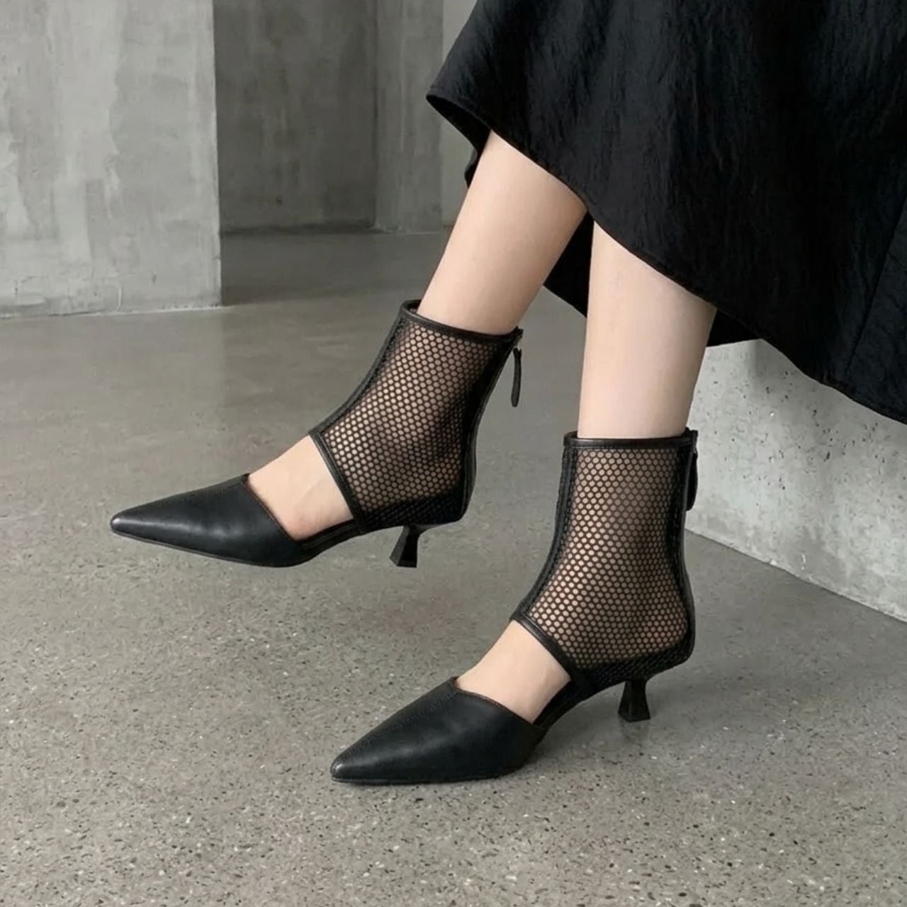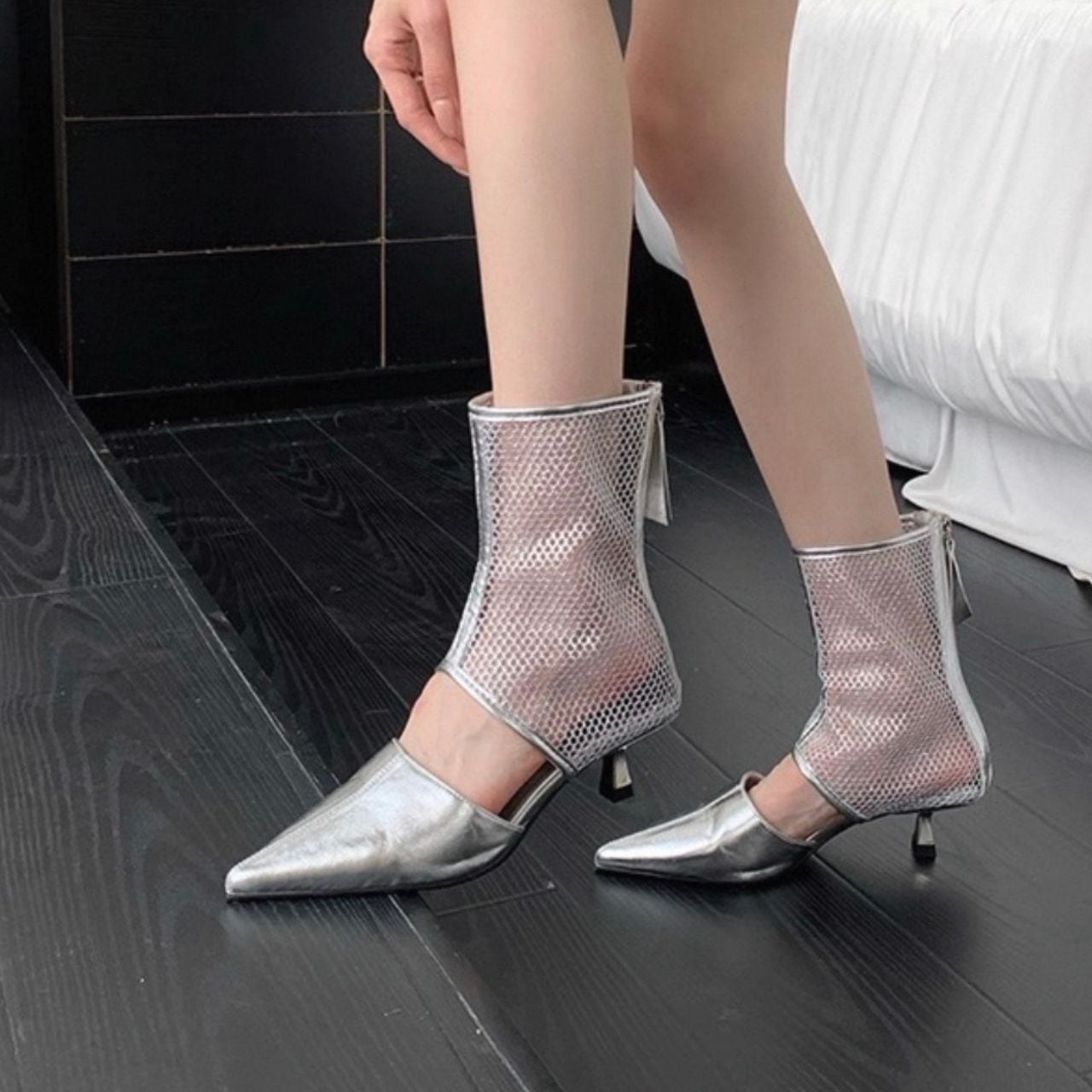 シャープなポインテッドトゥと透け感のあるメッシュ。
