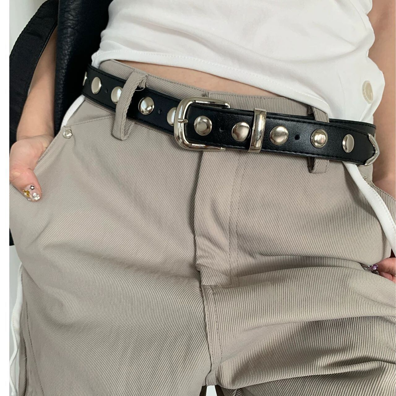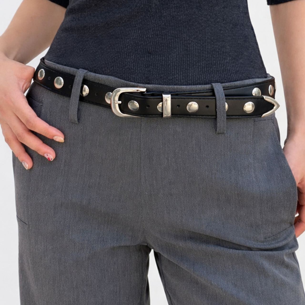 スタッズフェイクレザーベルト 0571