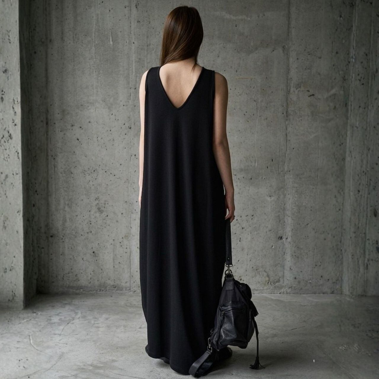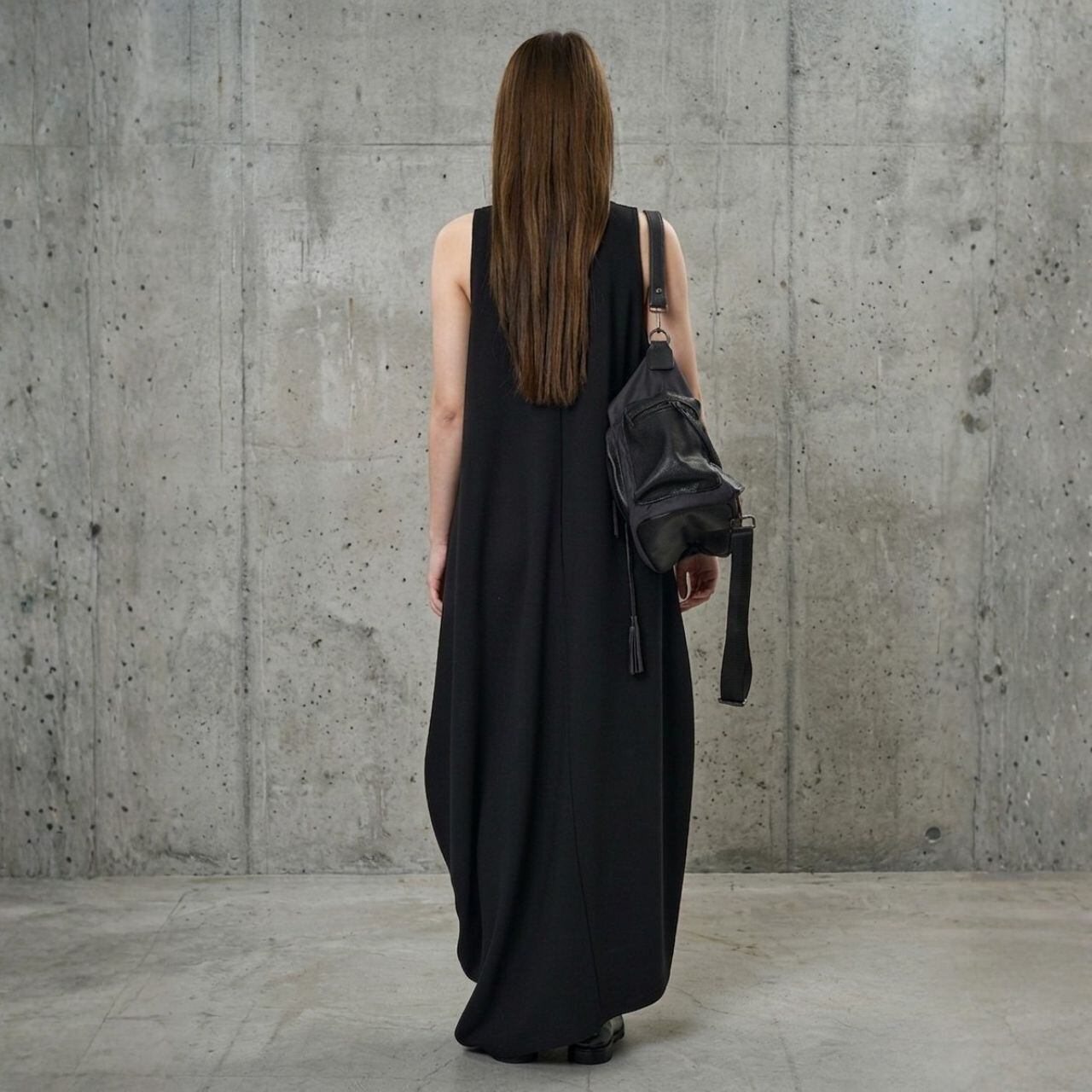 アシンメトリードレープワンピース(2way / Vネック × スクエアネック ) 0587