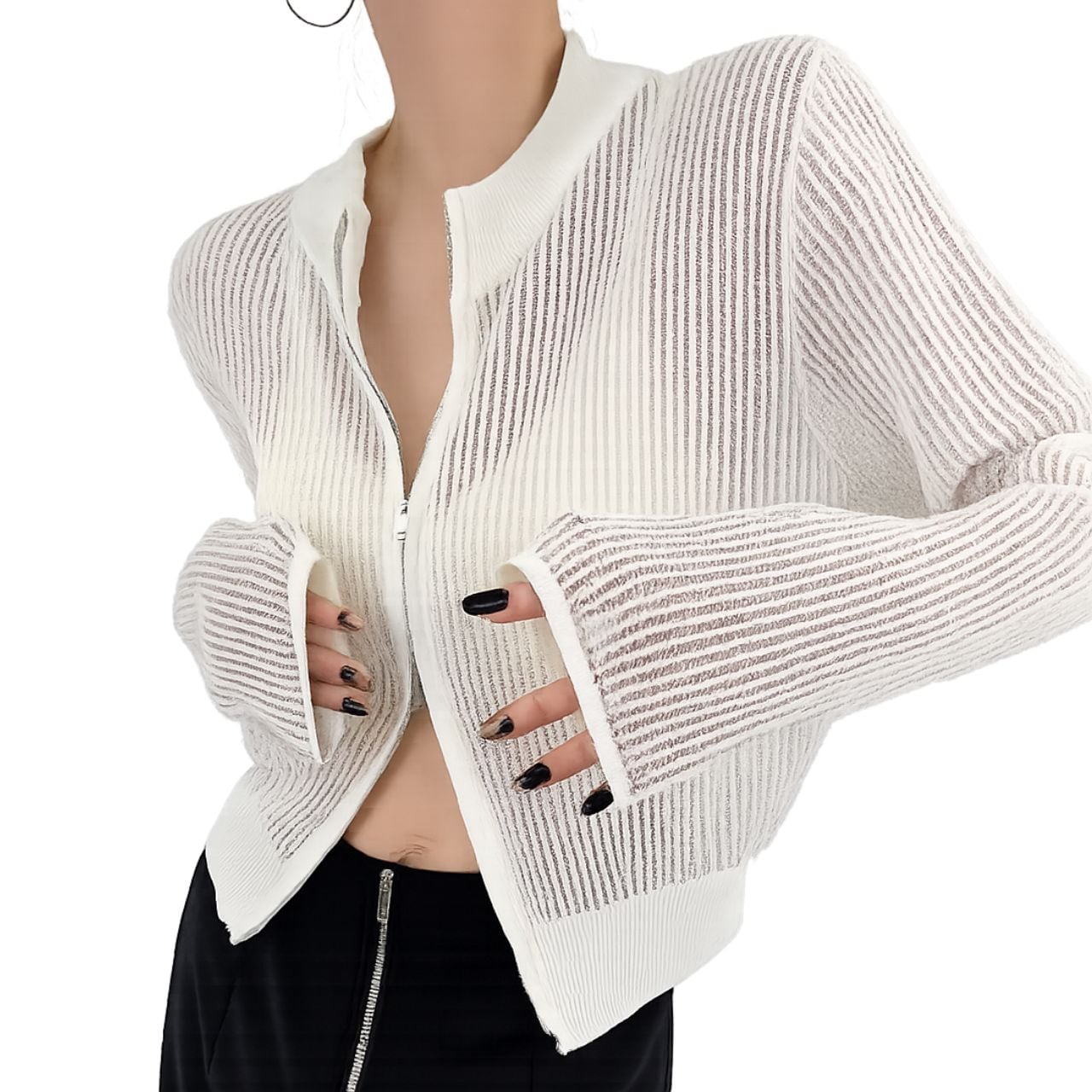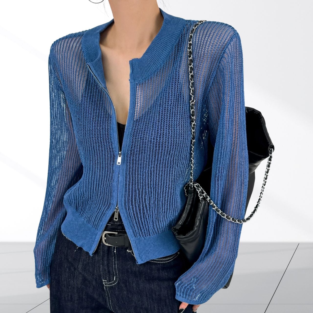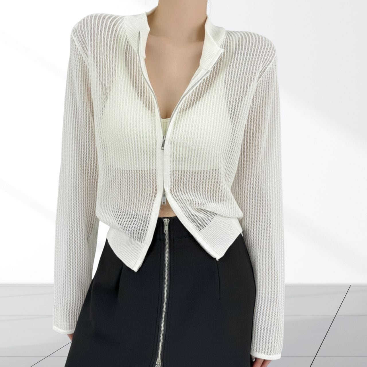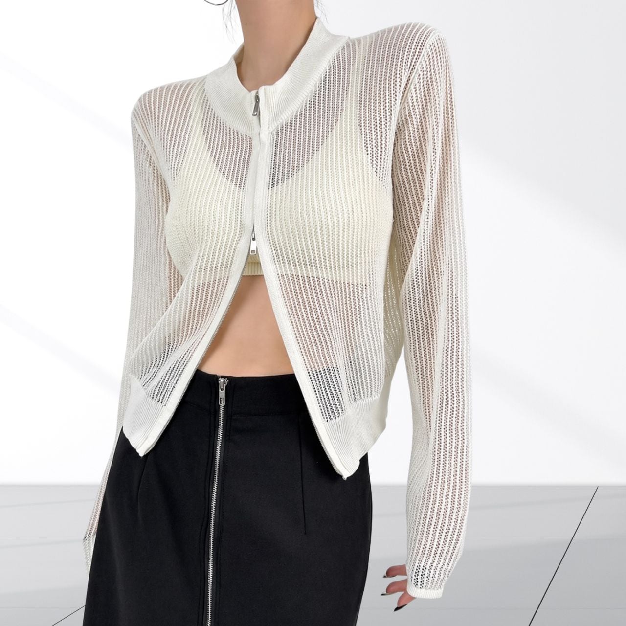 ダブルジップでバランスを調整。開け方ひとつで印象が変わるカーディガン。