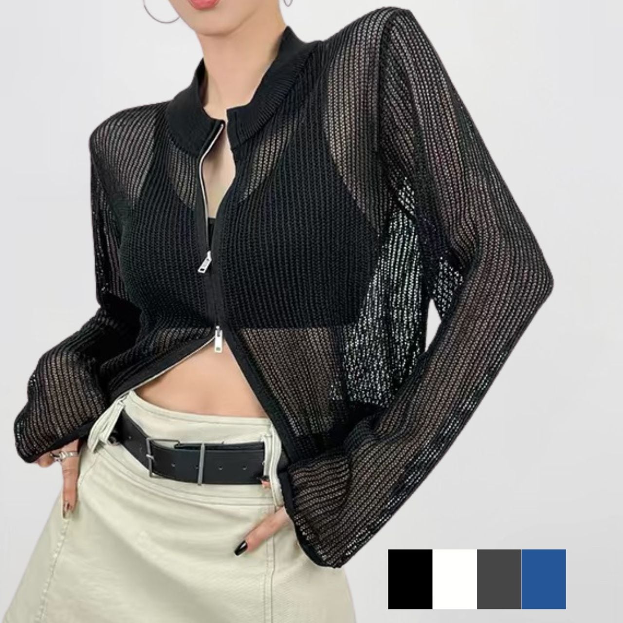 メッシュWジップカーディガン【4col】 0604