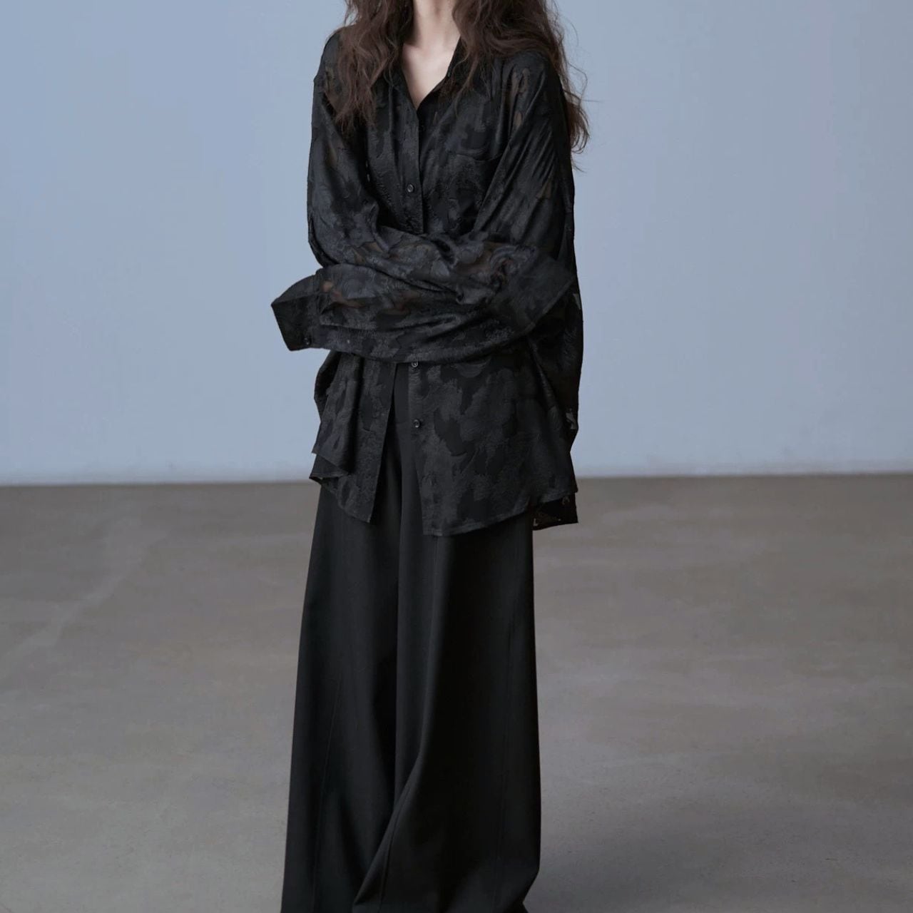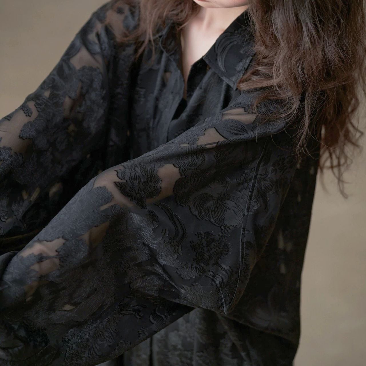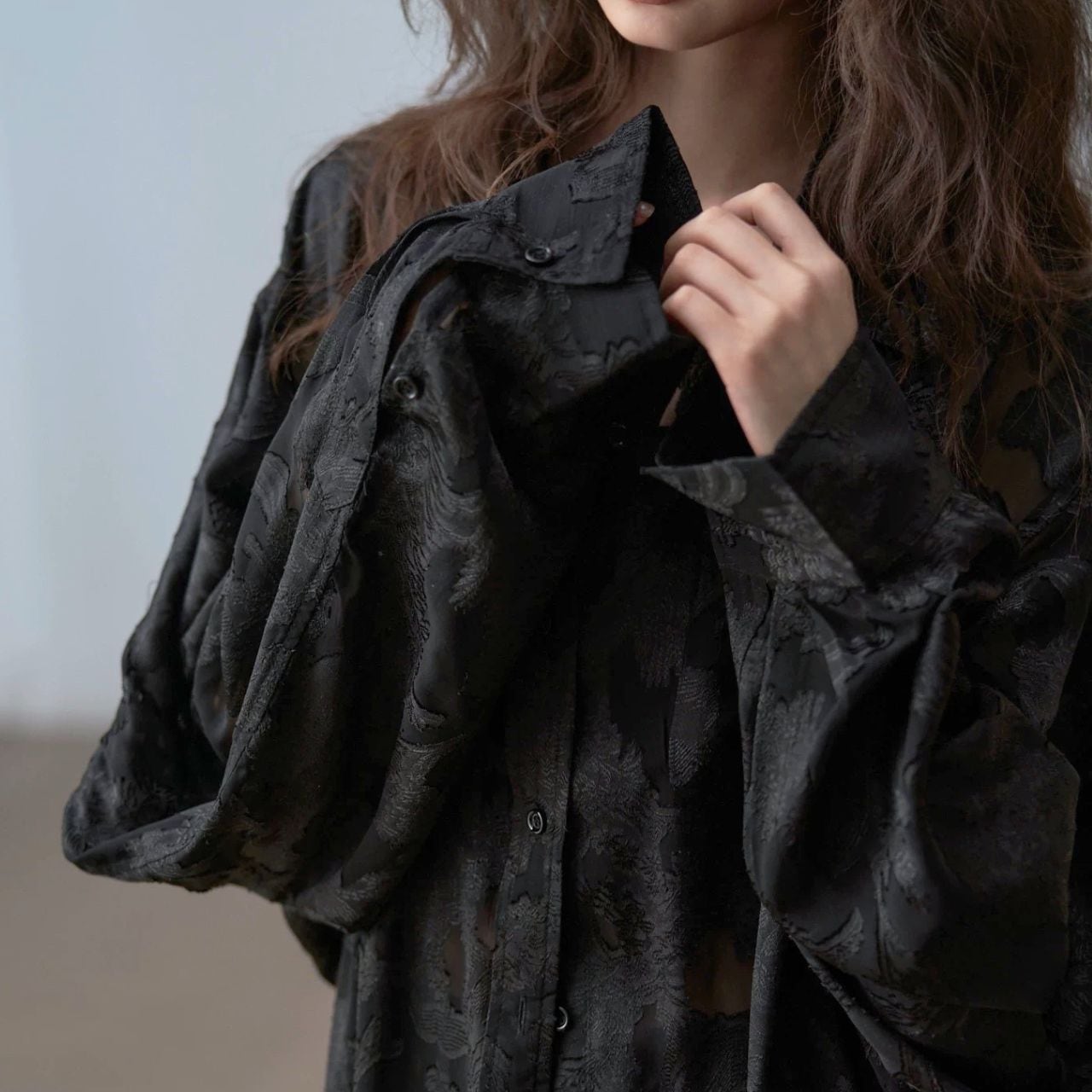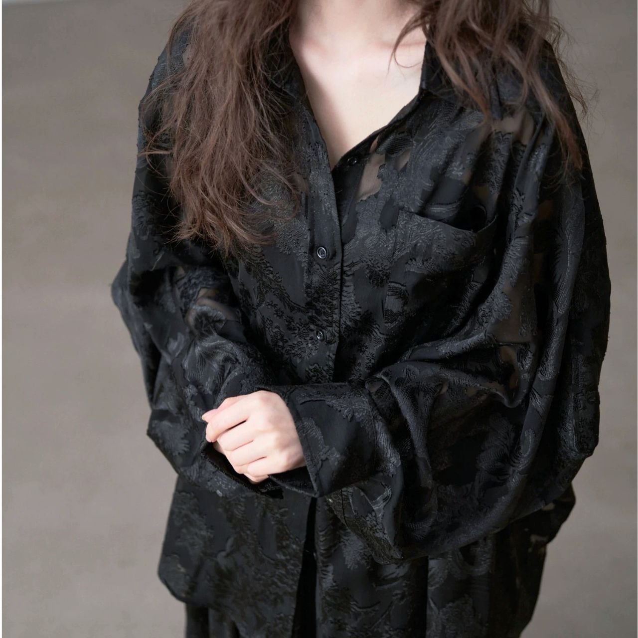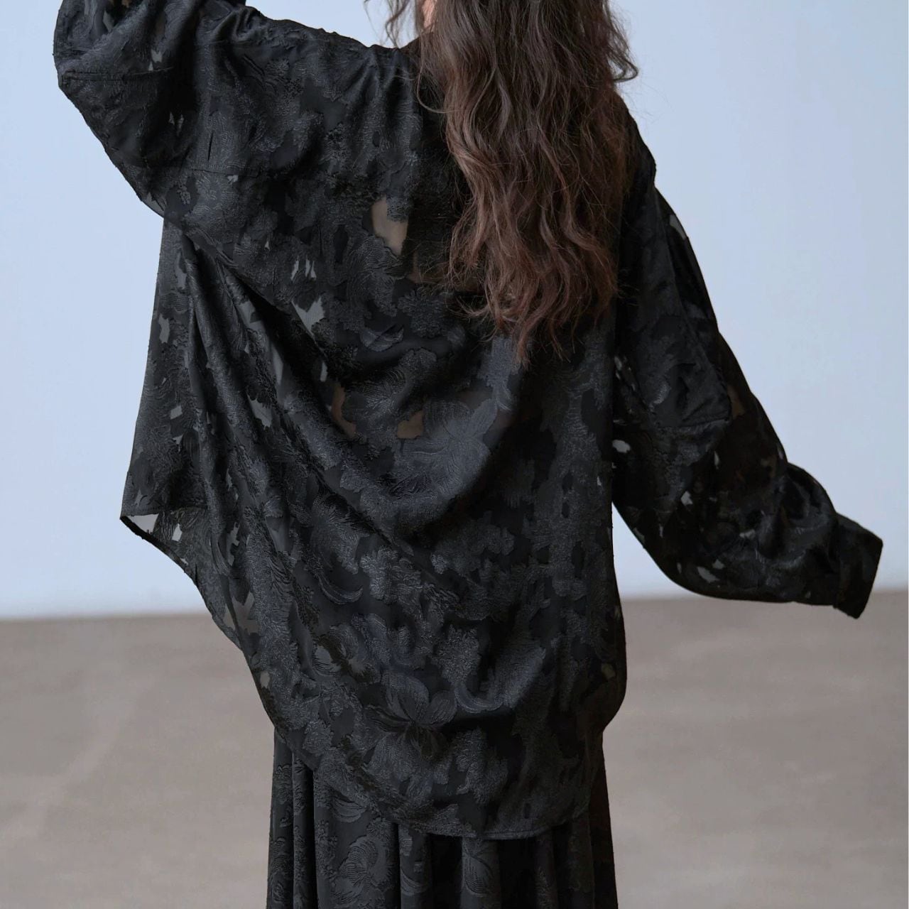 光の角度で浮かぶジャガードと軽く透ける質感が静かな存在感をつくる。