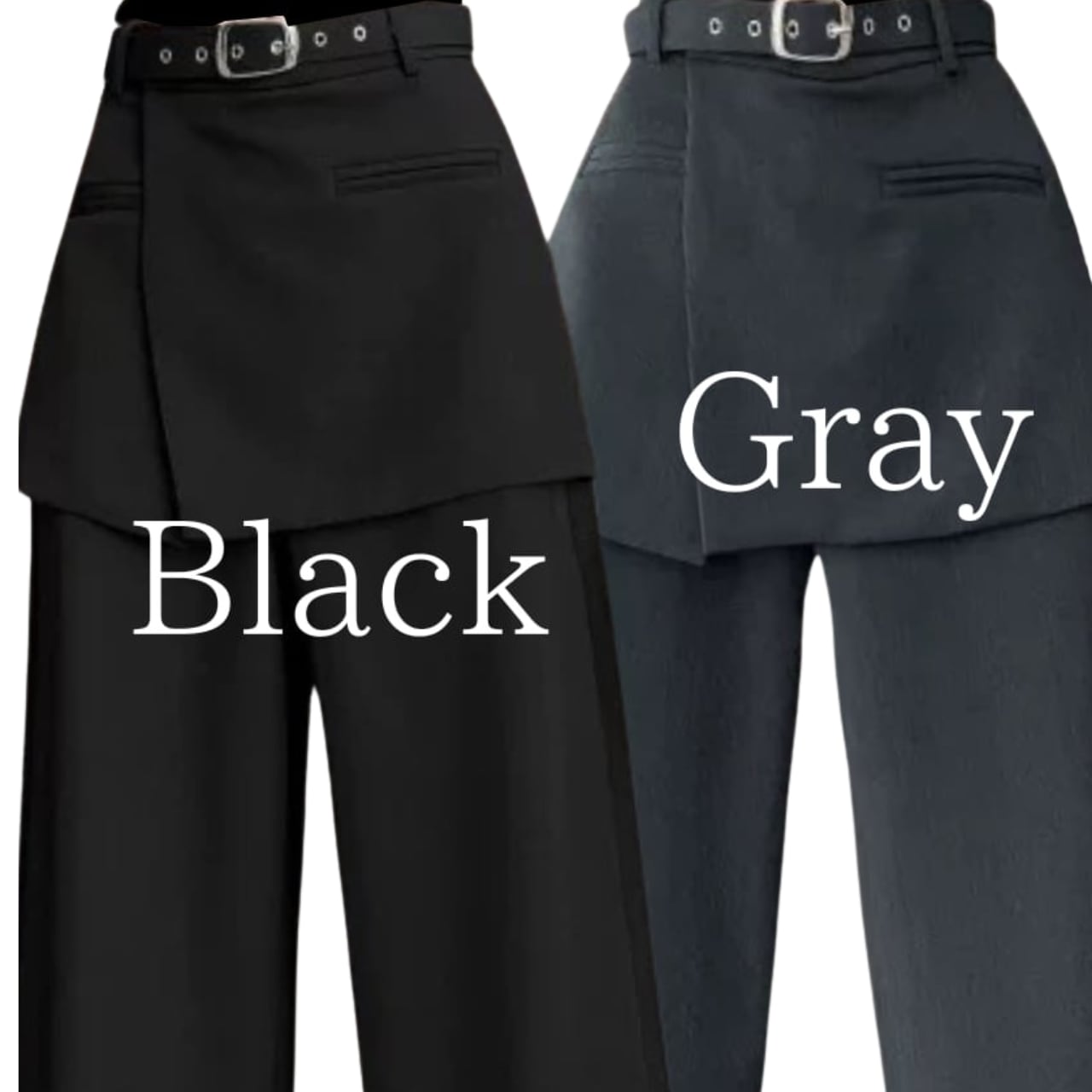 ミニレイヤード風ロングパンツ【2col】 0300